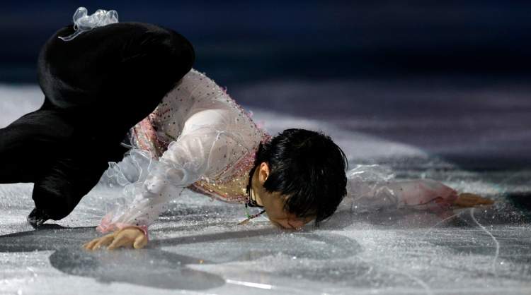 虽然本届冬奥会上没能站上领奖台,但是羽生结弦的还是最受大家期待的。此前曾有消息传出,羽生结弦表演滑的曲目是《歌剧魅影》,不过最终他为大家带来了一套非常具有治愈性的表演《春天,来吧》。穿着精美考斯滕的羽生结弦,再次上演了经典的吻冰礼,把他对于冰面、对于的花滑的爱都融入了这深情的一吻中,将最富有艺术感染力的花滑表演献给了北京冬奥会,也把希望和美好的愿景传递给了大家。冬天终将过去,春天终将到来。