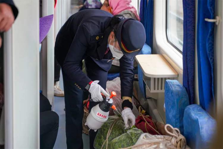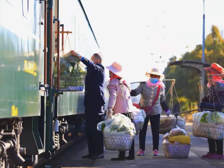 为保障上车老乡们的蔬果卖个好价钱,昆明客运段还贴心地为“慢火车”班组配备喷壶,用来为蔬菜喷水保鲜。