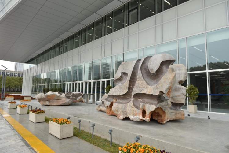 今天率先亮相的三件作品,分别是申凡作品《往来春秋》、谷文达作品《高山仰止》以及郑重宾作品《飞石》。