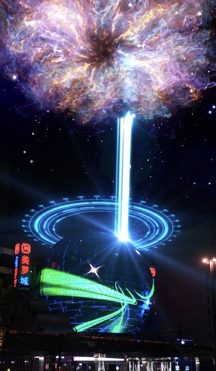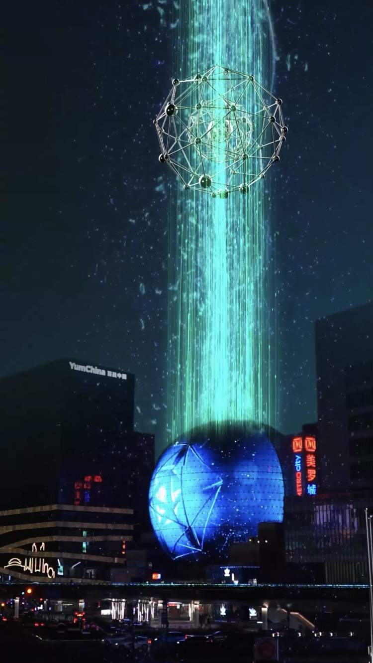 据悉,为何完美体现元宇宙的概念,在本次仪式前夕,上海息络视飞科技有限公司研究了各种激光表演的可行性。为了将球体画面展现升级,公司与美罗城通力协作,成功克服激光设备安裝位置、反射角度、技术同步、承重传输等多重困难,于美罗城球体內部安裝了六台设备,通过后续数码编程,在车水马龙的徐家汇中,将美罗城幻化成舞台中心,让过往行人沉浸于视觉盛宴之中。