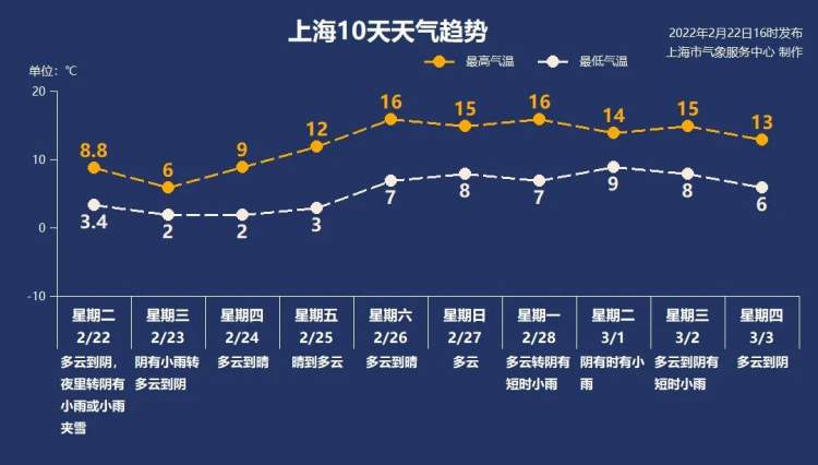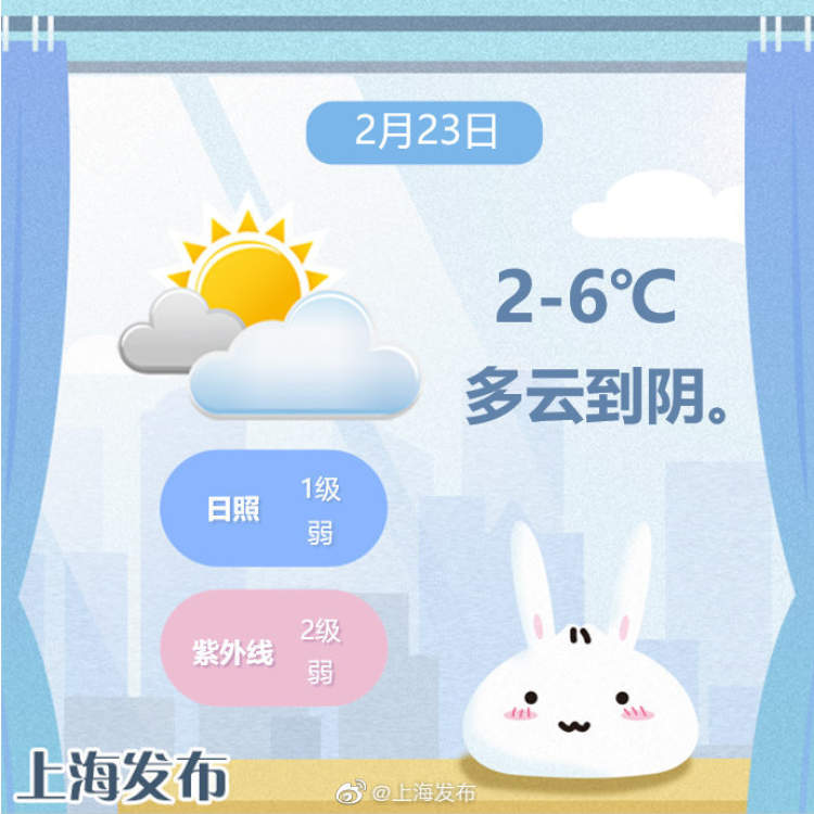 今天再冻一天 明起气温逐日走高 周到君 2022-2-23 来源:周到上海 今天申城阴有小雨或小雨夹雪,局部地区有短时小雪,上午转多云到阴,夜里到明天多云到晴。北到东北风3-4级,中午起逐渐增大到4-5级,夜里转3-4级。气温不高,从2度起步,最高止步6度,体感较冷,小伙伴们出行记得多穿点,谨防感冒。 明天开始,天气全面转好,晴或多云成为主旋律,气温也步入上升通道,逐日走高,周六最高气温预计可达16度,洗晒出行两相宜。 来源:周到上海 作者:周到君 赞一个 (0)