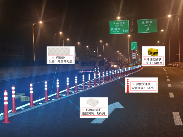 此次,市道运中心联合交警、养护单位及专业材料公司等,遵循“安全、醒目、耐久、有序”的原则,率先在虹梅南路高架上下匝道、立交及紧急停车带等位置增设隔离设施警示标识,采取“一预告、二限速、三警示、四容错”的立体化措施,对匝道口和紧急停车带进行升级改造,提升道路设施品质,提高设施运维水平。