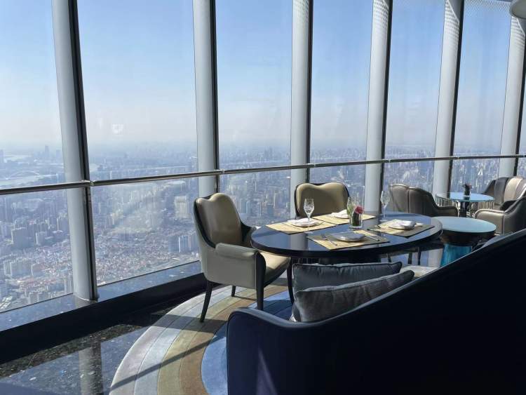 在天气晴朗的午后,高空餐厅的能见度非常好,不仅可以俯瞰浦江两岸美景,更能远眺到远方的大海,美食美景两不误,吸引了不少客人来打卡。餐厅也专门推出了云端特色下午茶,根据季节和主题更替选用新鲜应季食材、采用别出心裁的创意,为宾客打造更多云端体验。