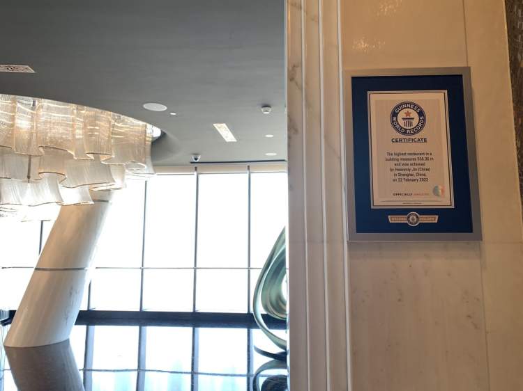 近日,位于上海中心120层的J酒店上海中心天之锦餐厅,以556.36米的绝对高度打破原先441.3米的吉尼斯世界纪录, 成为“建筑物中最高的餐厅”最新纪录保持者。记者也在今天实地探访了这座全球最高餐厅。