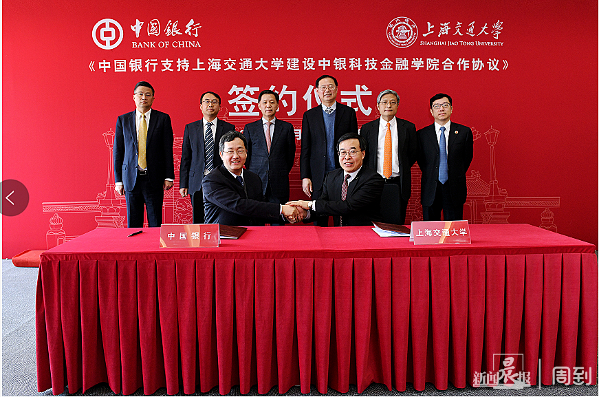 今天(2月24日),中国银行和上海交通大学签订合作协议,共建上海交通大学科技金融学院。