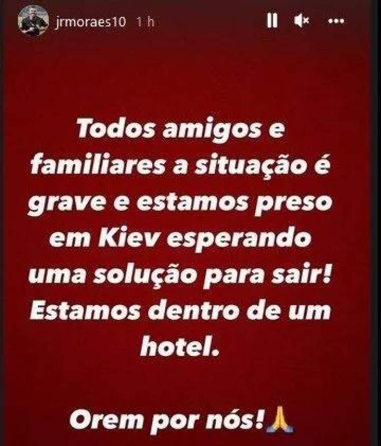 24日,球队的巴西前锋更新了社交媒体:“现在的情况非常严重,我和我的朋友、家人们都被困在基辅,我们正在等待逃离这里的方案,目前大家都被困在一家酒店里,请为我们祈祷。”