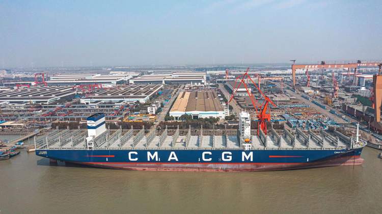 2月28日,中国船舶集团有限公司旗下沪东中华造船(集团)有限公司联合中国船舶工业贸易有限公司为法国达飞海运集团建造的15000TEU超大型集装箱船“达飞·阿多尼斯”号在上海命名。这不仅是为达飞集团量身定制的5艘常规动力系列箱船中的最后一艘,实现了平均每月命名交付一艘的既定目标,也是该超大型集装箱船项目的完美收官。