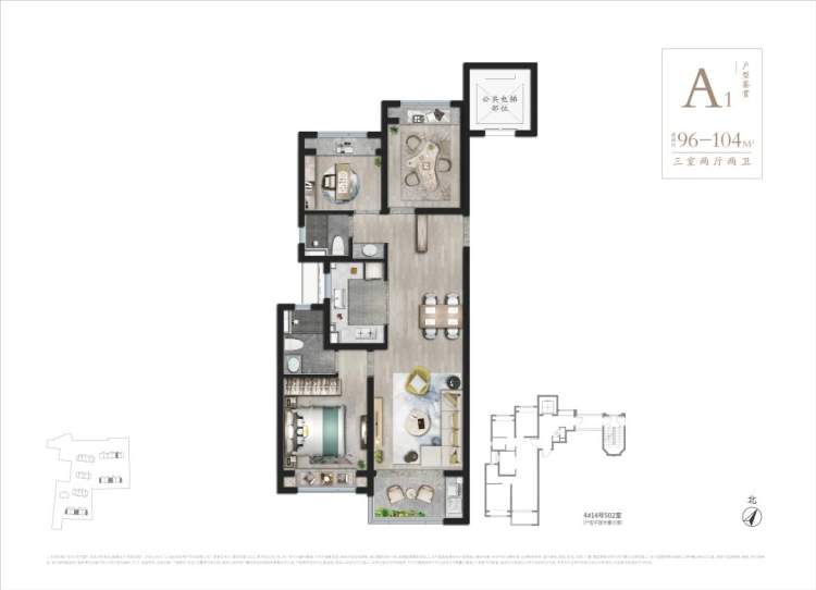 户型:95-120平方米洋房、118-129平方米叠加(复式住宅)、155-163平方米归心合院(联列住宅)