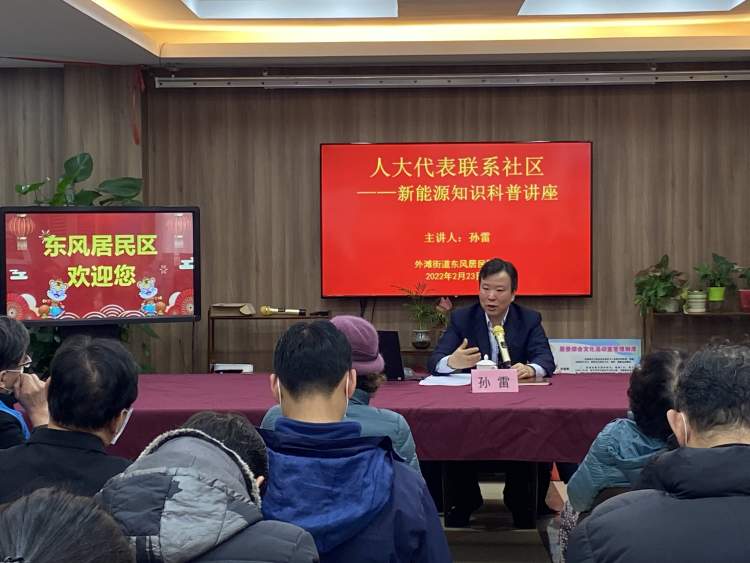 在第二片区人大代表联系点,一场以新能源知识科普讲座为主题的代表联系社区活动正在开展。