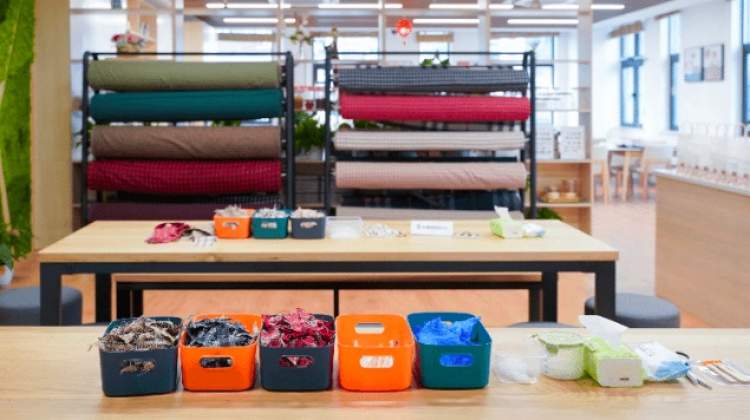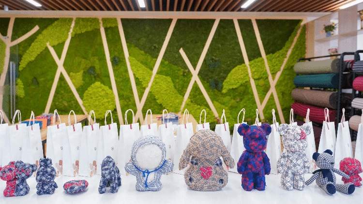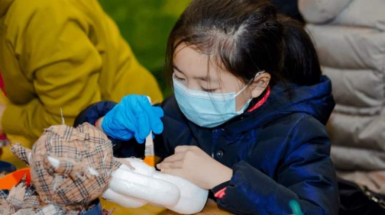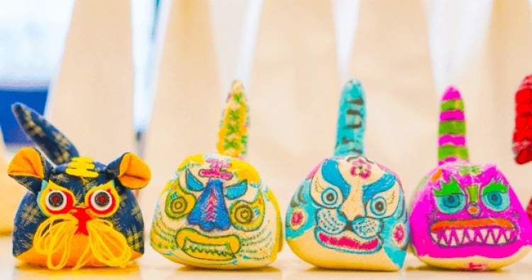在浦北路988号,社区居民们正在用布料制作各种手工制品。一位低幼龄的小朋友正在将一只布虎设计成自己想要的样子。只见她将布虎涂成了天蓝色,她说在她创造属于自己的艺术作品。