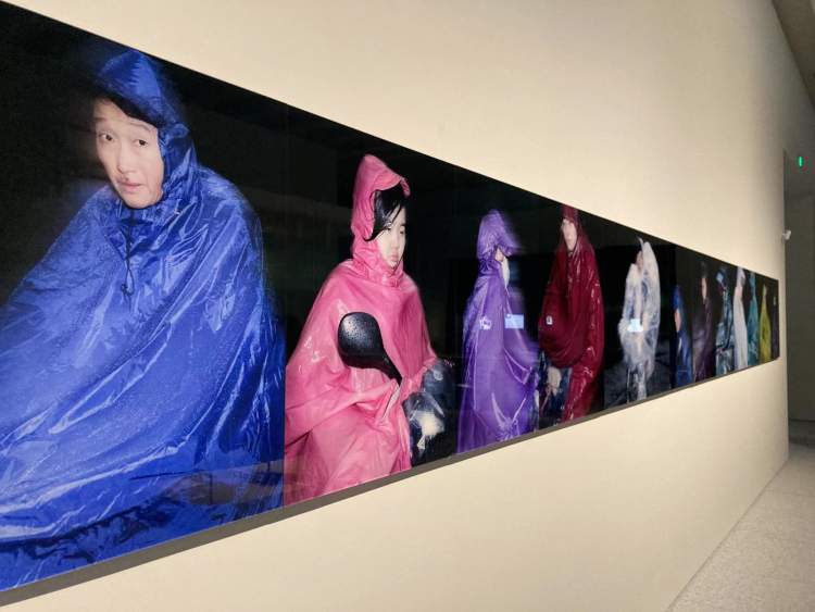 波兰艺术家维克多利亚·沃杰霍斯卡的摄影作品《瞬间》如电影胶片般展开了一幅身披彩色雨衣的杭州人在台风中骑行的画面,彩色雨衣、疲于奔命的表情和清晰可见的水珠,形成了强烈的对比。