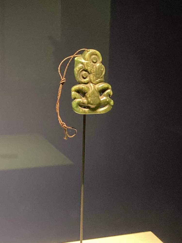 在展厅里,有一件毛利人的碧玉护身符,跟中国古代玉雕的风格截然不同,带有神话和某种崇拜色彩。在毛利人的传说中,碧玉与一种超自然的海洋生物有关,水使得碧玉具有保佑的功能。