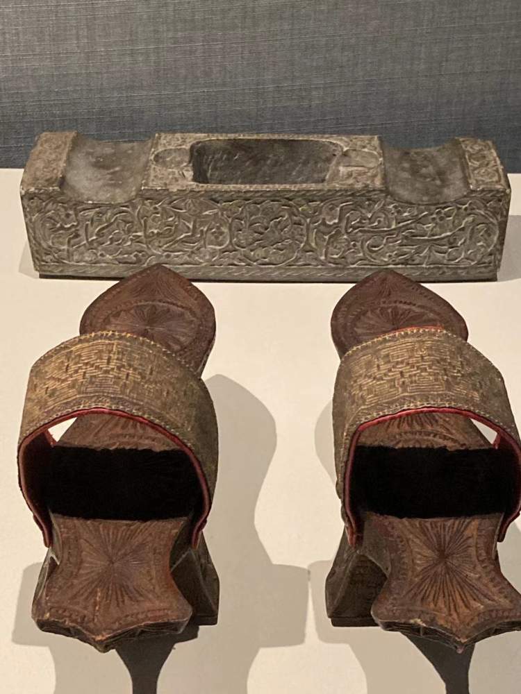 展览中还有土耳其浴的相关展品,比如浴袍、头饰、浴桶、拖鞋、足凳;也有尼日利亚和马达加斯加人家庭中使用的盛水的罐子。