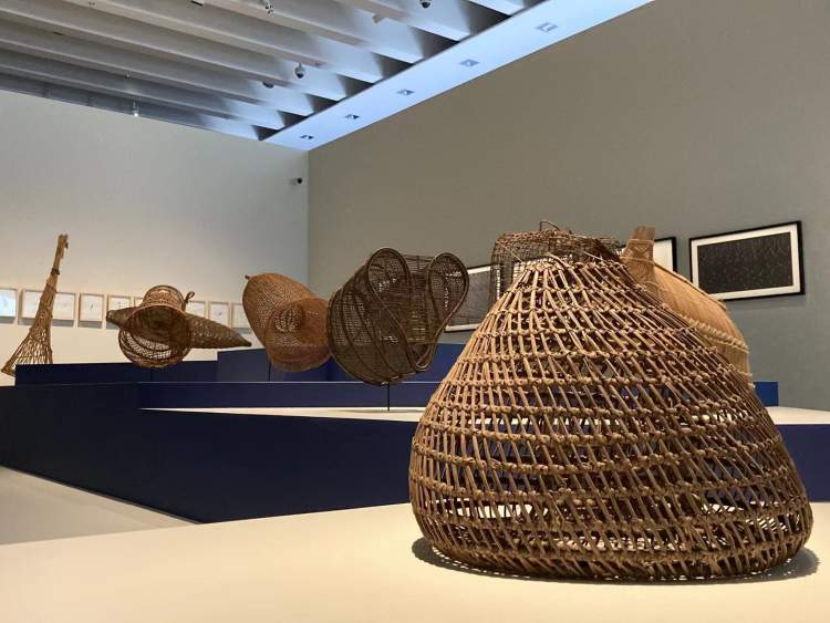 各式各样的鱼篓来自世界各地工匠们的手作,这些鱼篓为了捕获不同鱼类而做,本身也呈现了人类的手工艺术和想象力。