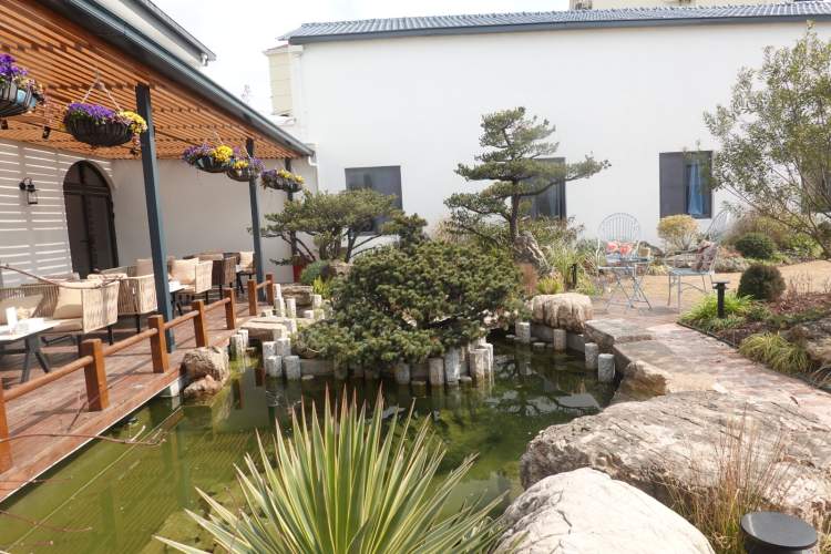 门口便有奇石嶙峋,推开门则是一片“世外桃源”。