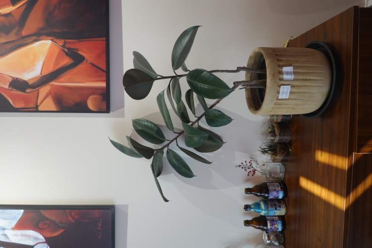 店内的植物大多是销售品,可见即可得。性价比如何?下图这棵橡皮树,不含盆65元,盆90元。