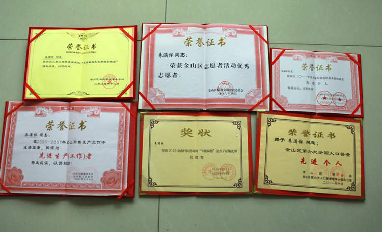 “献血救人不容易,阿奴为你们骄傲!”坐在自家宅前,眯着眼睛,看着女儿朱满怀、朱正宝的一本本鲜红“无偿献血证”和获奖证书,78岁的上海市金山区山阳镇长兴村2组村民倪永芳老人笑得很甜,并给两个女儿竖起了大拇指。