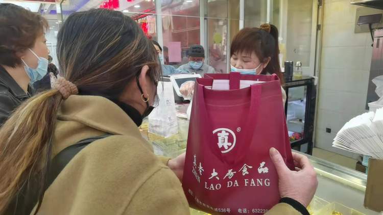 店内,金华火腿、曲奇麻花等等柜台前,阿姨伯伯们忙着选货。有人等待间隙用手机拍店堂内的照片:“很多年在这里买,有感情,等关了再开就不是这个样子喽!”