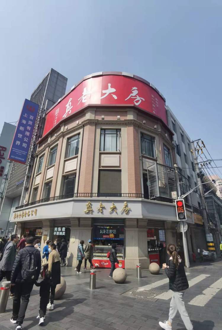 南京东路福建中路路口的真老大房,老远就能看见建筑上方高挂的一块巨型红色店牌,写着“真老大房”四个大字。