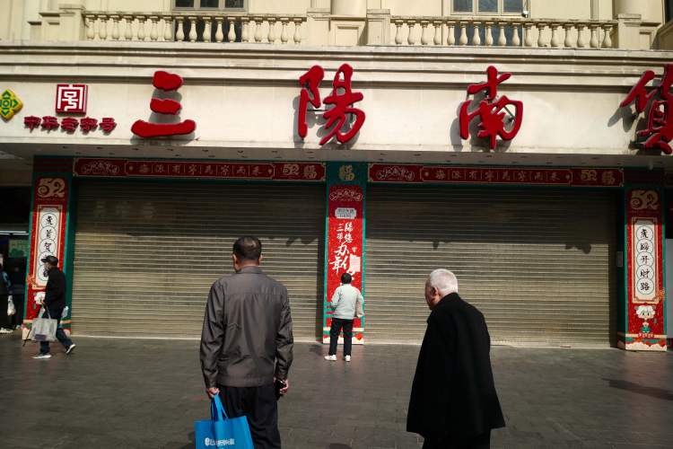 三阳南货店两排宽宽的卷帘门已经拉下,路过的行人不时好奇地看看这家店铺。