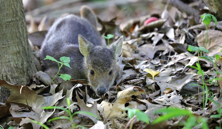 松江浦南水源涵养林里出生的幼獐