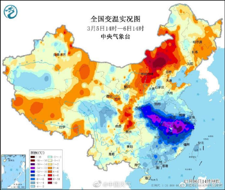 放眼全国,江南的气温很任性。