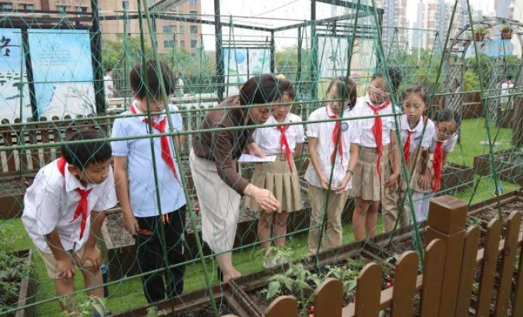 在奉贤,许多中小学都有一片“开心菜园”,奉贤的“申时校园”里,孩子们走出教室、亲近自然,让书本与实践的学习在时间和空间上衔接,“小菜园”成为了户外研学的“大天地”和劳动教育的天然基地。