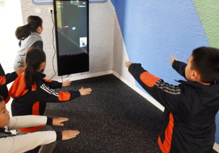 七宝实验小学校长王瑾介绍,学校积极探索AI智慧课堂,借助信息技术赋能“双减”,历经半年,打造了一个“野孩子魔镜健身房”。魔镜采用AI智能交互分析算法等技术,实时准确捕捉学生运动姿势。学生们可以根据自身体能选择适合的运动项目,通过趣味运动、打榜竞争、在线PK等多种互动体验形式,在快乐中坚持体育锻炼。