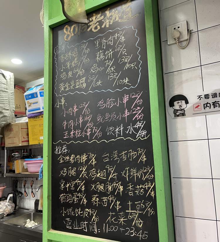 店家将小吃的种类和价格用粉笔写在小黑板上,挂在门口,一眼可见,这样菜单的呈现方式将不少顾客带回了80年代。店内的环境也比较怀旧,“除了有个正经门面,其他的和以前学校门口的小摊一模一样!”