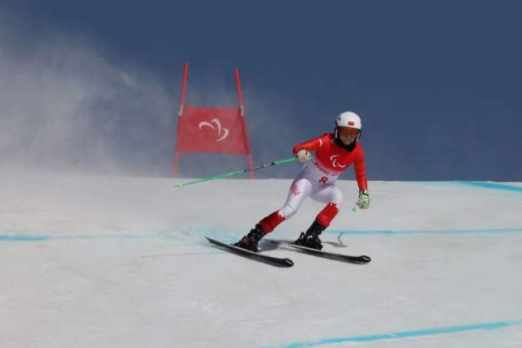 在3月7日的高山滑雪女子全能超级大回转(视障组)比赛中,朱大庆跟随领滑员闫寒寒绕过一个个旗门,快速冲过终点线,最终以微弱战绩负于斯洛伐克选手法尔卡索娃。