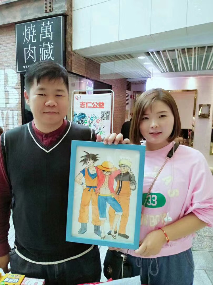 周英娣还告诉周到君,她从小就有个小爱好——画画,但她一直只是自己拿笔在纸上随便画画绕绕,“上不得台面”。没想到,投身于公益事业后的她,给自己的画也赋予了意义。