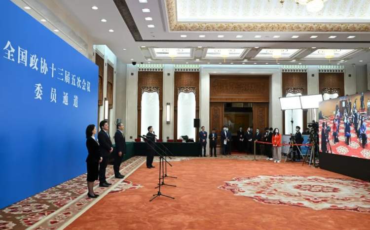 3月7日,全国政协十三届五次会议第二场“委员通道”采访活动在北京人民大会堂新闻发布厅举行。新华社记者 金良快 摄