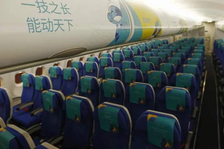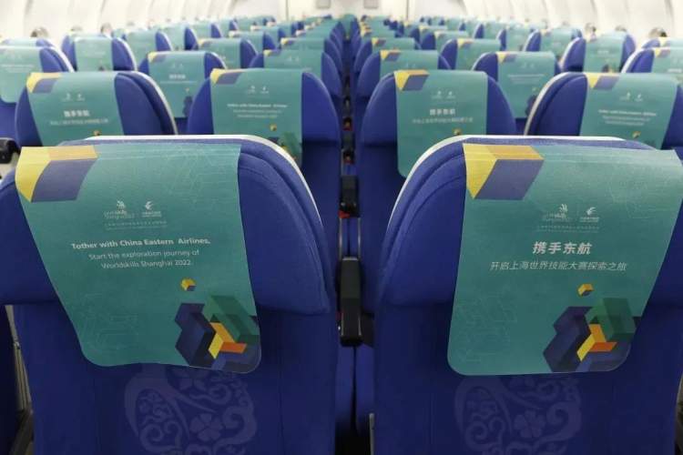 首航航班上,无论是客舱布置,还是环节设置,都融入了丰富的世赛元素,旅客在踏上机舱的瞬间就如开启了世赛探索之旅,只见一排排座椅上被绿色的世赛专属头片所装饰,客舱行李架、小桌板等明显位置贴有世赛图案,世赛的独特魅力扑面而来。