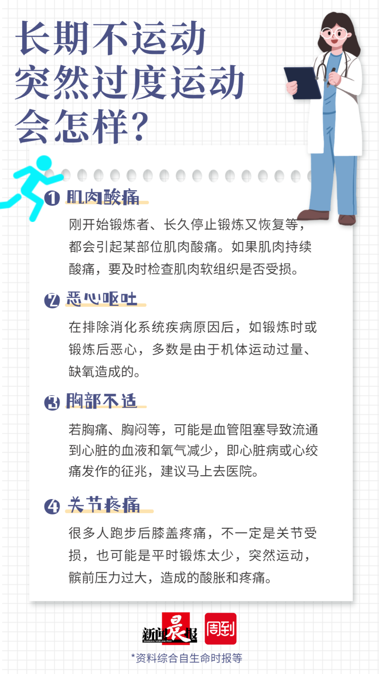 除了横纹肌溶解,突然间的过量运动还可能导致这些情况↓