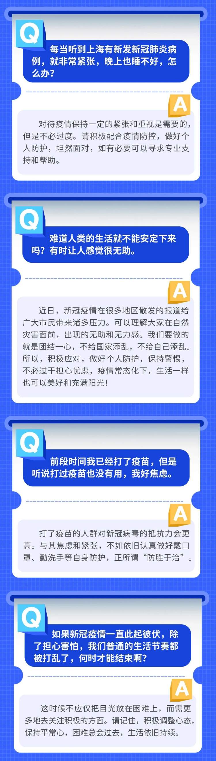 团市委“青春上海”微信号近期还携手青年报梳理了一些关于疫情常见心理方面问题的实用问答,一起来看看吧: