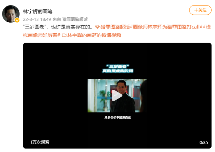 最近,网剧《猎罪图鉴》开播,这部并非大制作、也没有流量演员的网络剧,短短一周时间在微博话题上的阅读次数将近7亿,截至3月13日,该剧还曾5次成为全网正片播放市占率的日冠。随着持续攀升的热度,也让画像师这个冷门刑侦职业进入大众视线……