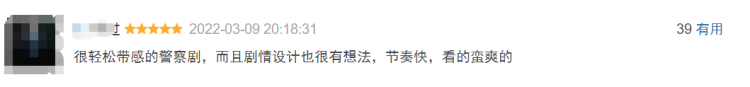 很轻松带感的警察剧,而且剧情设计也很有想法,节奏快,看的蛮爽的