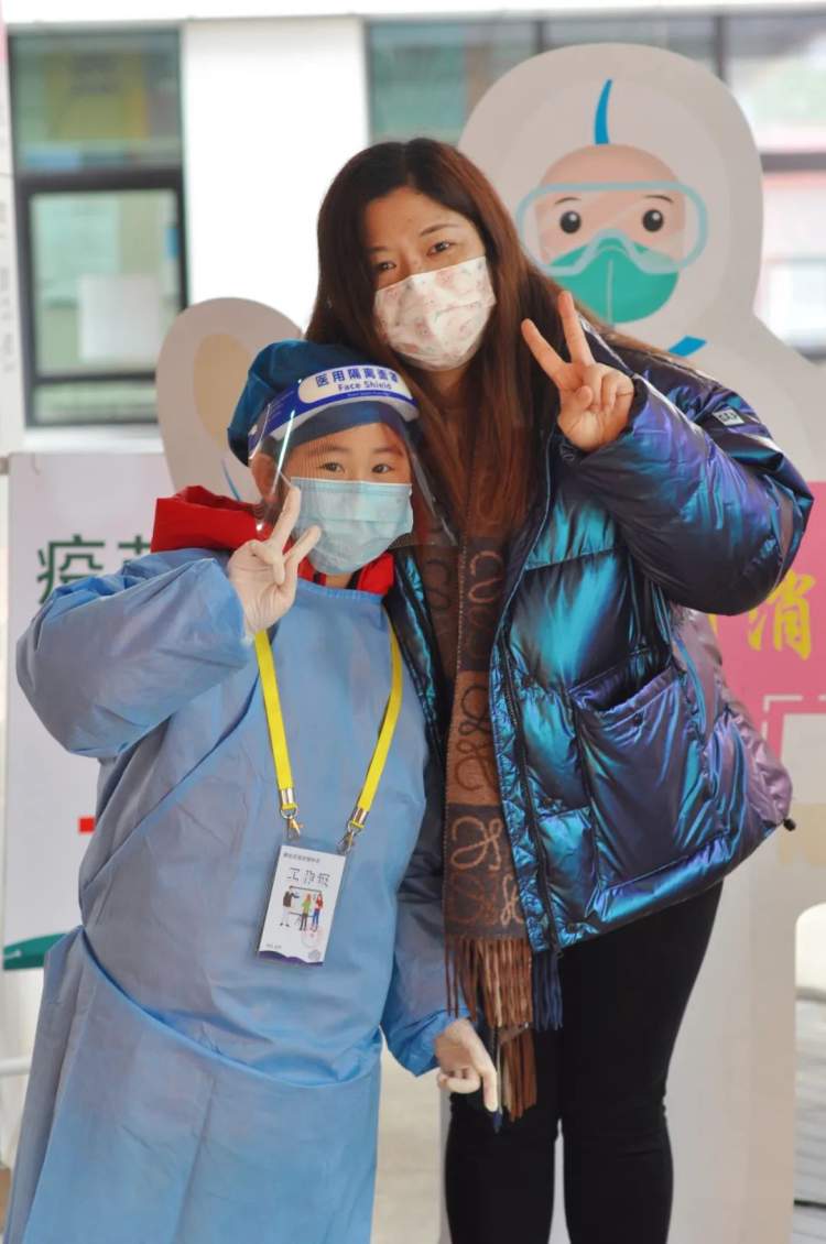 这段留言获得了一千多人点赞。忙碌的父母们是医二代的光,是她们追逐的榜样。因为疫情,使他们对伟大和感恩有了更深刻的理解。去年8月以来,林慧珊的女儿李梓涵报名参加了静安体育中心新冠疫苗接种点志愿者活动,几乎每个周末,她都穿上防护服,戴上工作证,担任小志愿者,给市民们维持秩序,和她一起报名参加志愿者活动的,还有中心公共卫生科科长刘怡的女儿叶雨择。天目西的“医二代”们小小年纪就学会了挺身而出,积极接种“新冠疫苗”的同时也学着妈妈们的模样,尽自己的一份力量。