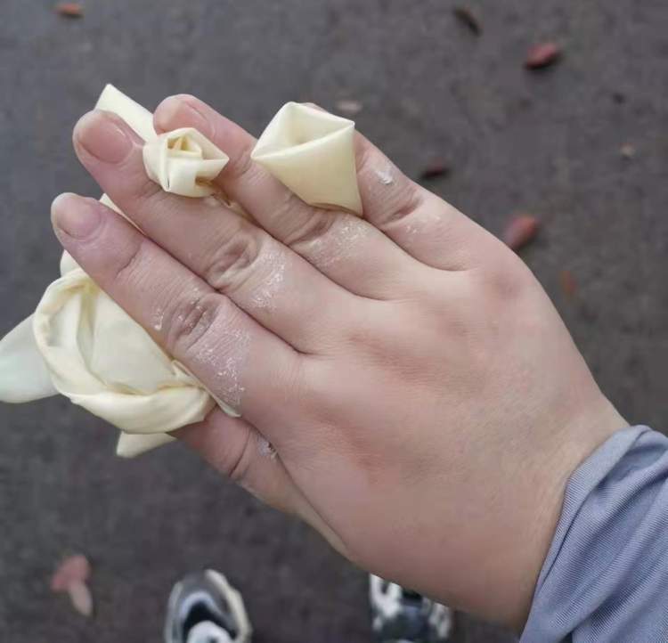 因为气温较高,工作强度也大,工作人员都没有片刻歇息,李文自己也已经浑身是汗,戴着手套的手像泡发的馒头,“手套里的粉末和汗水混在一起,特别难受”。
