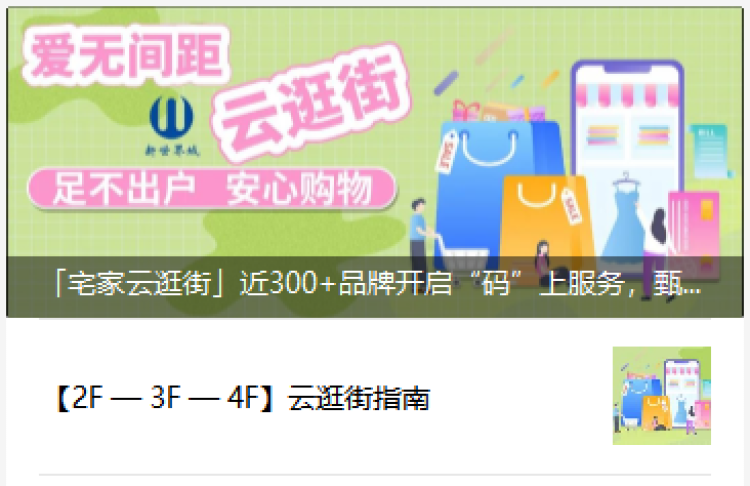 例如新世界城自本周起就启动了“线上云购物”的活动,大牌化妆品、服饰珠宝、家居用品等品牌都有了“码上服务”,通过扫描二维码可以加入品牌微信群或添加店长微信,了解最近有什么“上新”,或是下单后等快递送到家。