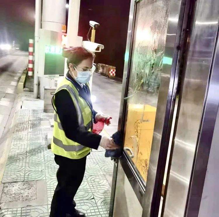 为有效防控疫情,收费岗亭、收费站车道每天三次准时消毒,为过往司乘人员提供安全整洁的通车环境。每个收费员都自觉戴好口罩和胶质手套,对通行卡进行逐一消毒。