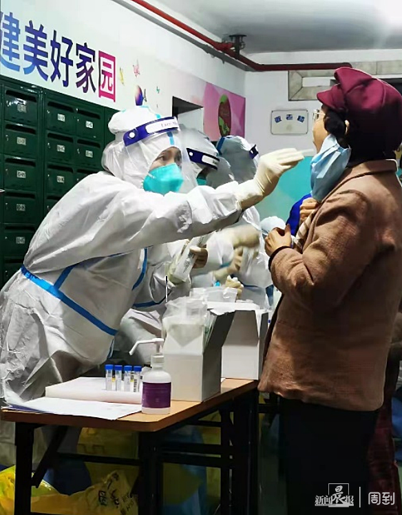 考虑到楼里有300多人,进行核酸检测时场地宽敞才能方便医生操作,居委干部把场地设置在大楼外的空地上。王医生考虑到楼里老人比较多,晚上气温低,老人体质差,在楼外容易着凉,建议将场地移到楼里来。居委会听从王医生的建议,检测场地改在了大楼的门厅里。拥挤的场地给医生工作带来不便,为了提高采样效率,王医生全程站立。从晚上八点开始到深夜十二点,六位医生顺利为322位居民采集了核酸样品。整整四个小时,医生们一直站着工作,认真严谨,生怕忽略某个细节。