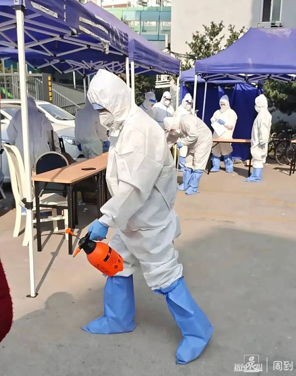 昨天是国际妇女节,周二居委会的女同胞们除了党总支书记李荣芬以外都休假了,只有李书记和两位男同胞在办公室工作。下班前的一个电话让办公室的气氛骤然紧张起来——中山西路380号发现新冠密接人员,必须马上封楼,当晚即开展第一轮全员核酸检测。李书记立即安排两位男同胞核查中山西路380号人员,打电话召唤休假的三位女同胞回到工作岗位,一位同志接到电话就拿起被子、洗漱用具赶到居委会上班,连同大楼物业等各方人员,共同奔赴中山西路380号安排封楼事宜、布置核酸检测场地。