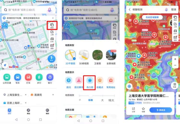 百度地图升级推出疫情“出行信息速报”服务,为广大上海市民提供包含官方核酸检测网点信息在内的最新疫情防控动态。此外,市民还可以通过百度地图热力图模式,直观了解各核酸检测网点的人流密集度情况,合理安排时间或更换检测机构。