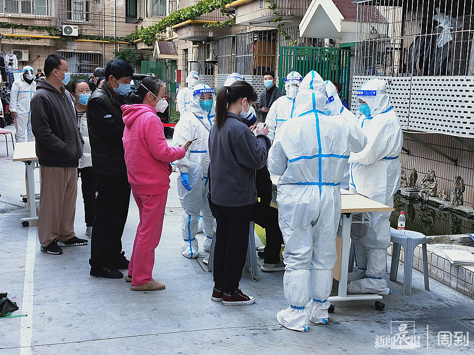 当天晚上7点,我们穿上防护服开始动员居民做核酸检测,统计人数、协助居民生成核酸检测二维码、维持秩序,到晚上11点半的时候顺利完成第一轮核酸采样,然后做一些收尾的工作,直到第二天凌晨2点钟才在居委办公室凑合休息一下。凌晨4点半,我们又起来接收给居民准备的早餐,到6点钟的时候开始爬楼,将早餐和告知书发放到每一户居民手里。