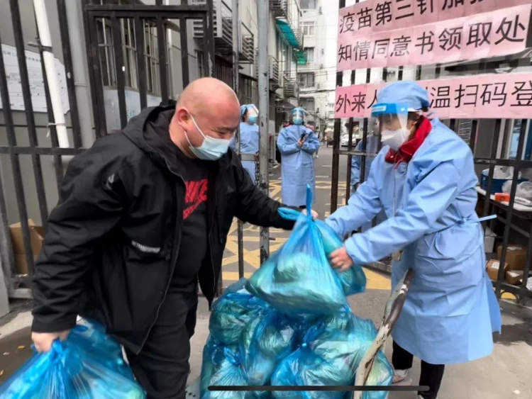 封控小区的大门为接续这份爱心短暂打开了片刻,两个小区的居委干部接过“爱心套餐”,对吴老板的善举致以了最真诚的谢意,“谢谢!谢谢!”“不客气!不客气!应该的。”紧接着,居委干部又将“爱心套餐”传递给了社区内共50户需要帮助的老年人们,“李奶奶,我们给你送菜来啦!免费的哦!是街道爱心企业特别赠送的新鲜蔬菜,还有一只鸡呢,记得放冰箱啊!”老人们收到“爱心套餐”也是连连感谢。这份感谢既是对居委、更是对有爱的商家!
