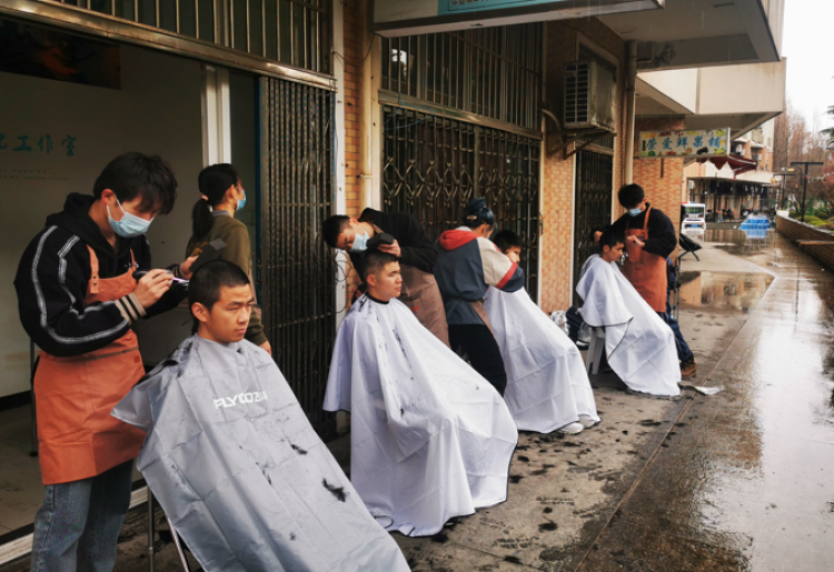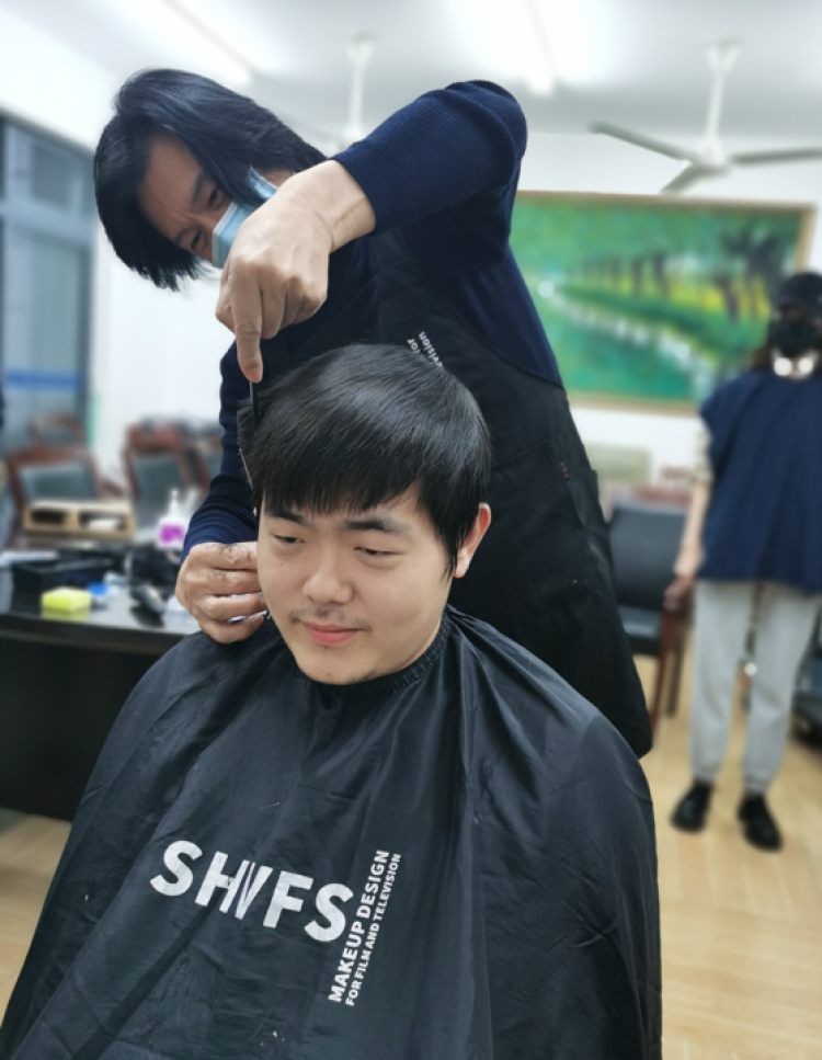 在学校学生工作办公室和后勤保障部的统一组织下,20余位同学踊跃报名,成为“公益理发师”,上海市中共党史学会会长、上海大学历史学系忻平教授、电影学院执行院长何小青、辅导员宋亚丽老师和迪拉热老师也自告奋勇,加入“理发天团”。