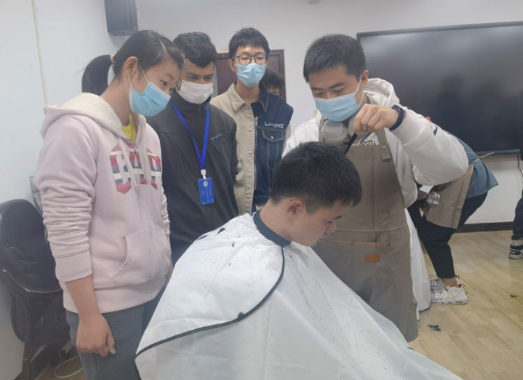这群新晋“Tony”放下了笔、纸、电脑和书,拿起了推子、剪刀、梳子和围裙,在高校理发圈“闯下了一片天地”。