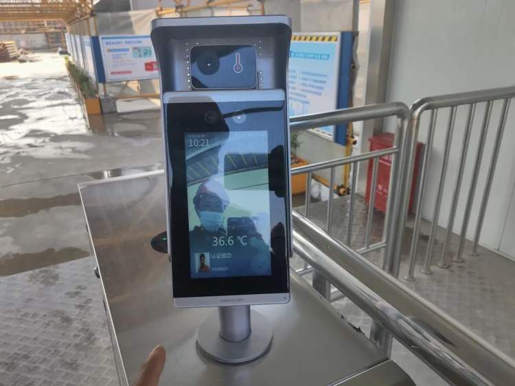 固体废物处置中心二期工地的闸机上有自动测温设备