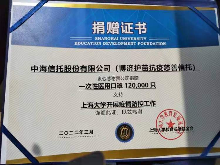 公司迅速设立“中海信托-博济护苗抗疫慈善信托”,募集包括公司固有资金、员工捐赠在内的各界资金,紧急采购防疫物资支援上海地区三所受疫情影响较大的高校。